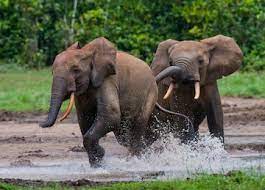 Safaris in Lobeke national park, spend the afternoon watching animals in “petite savanna”. Overnight in tents around “petite savanna” watchtower.