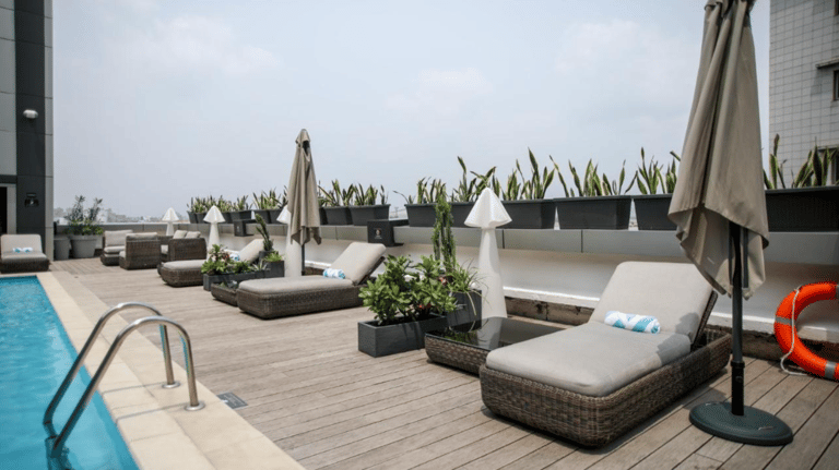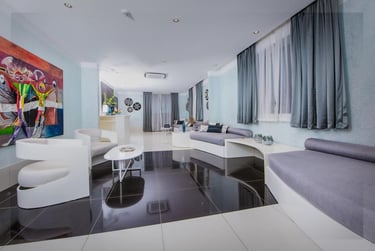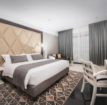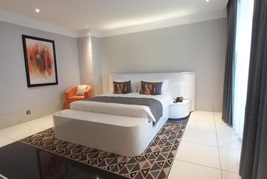 Benefit from VIP treatment thanks to the exclusive service of the Krystal Palace Douala establishment Located in Douala, 49 km from Tiko Golf Club, Krystal Palace Douala offers an outdoor swimming pool, free private parking, a fitness center and a terrace. It offers a restaurant, room service and free Wi-Fi throughout the property. It offers a 24-hour front desk, an ATM and currency exchange services. All rooms are equipped with air conditioning, a flat-screen TV with satellite channels, a minibar, a kettle, a shower, free toiletries and a wardrobe. All rooms include a safe. Some also have a balcony and others offer city views. A buffet and American breakfast is served every morning at the property. Krystal Palace Douala has a children's playground.